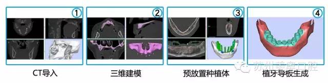 在导板上由计算机有效地标记种植位置,医生在导板上标注的位置和角度植入植体,更加有效,也更加快捷,避免大面积的手术切口,减少创口暴露时间。