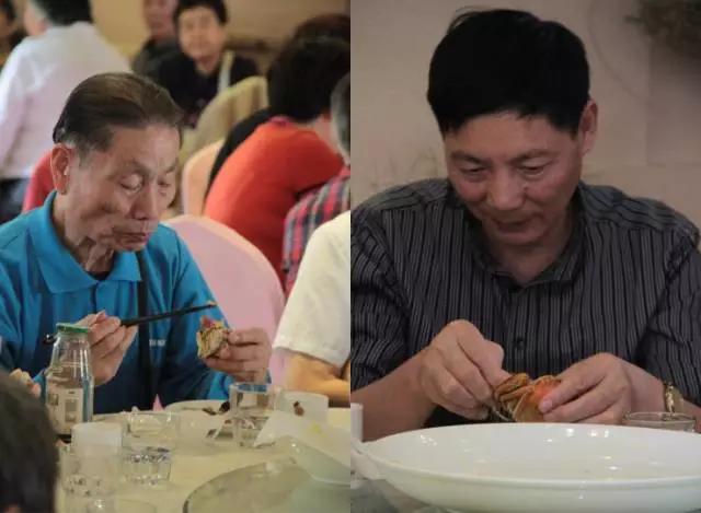 ▲“百叟宴”现场 叔叔们吃蟹