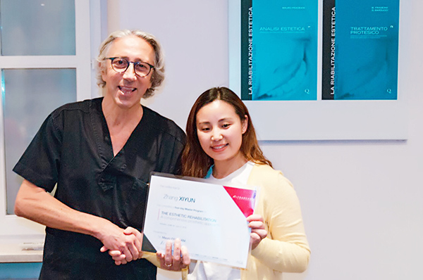 Dr.Mauro Fradeani为美奥口腔张西云医生颁发结业证书